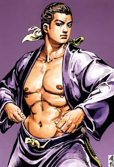 illustrious バージョンのLORAは、アニメ化版ではなく、荒木飛呂彦のオリジナル DRAWINGS の特徴的なスタイルを維持するために、彼の20作品で学習されました。残念ながら、小さな学習ステップでも過学習が発生してしまいました。そのため、CFGを3以上に設定することは推奨しません。それ以上に設定すると、私の好みではあまりにも派手になり、元の意図から逸脱してしまいます。