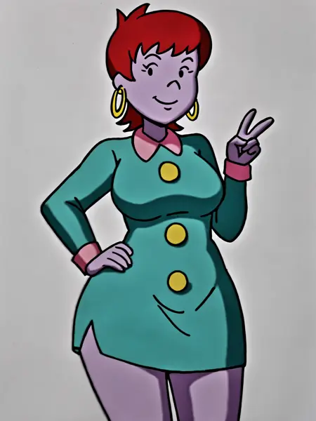 Beebe Bluff is purple-skinned with red hair from the series Doug. She is Patti Mayonnaise's best friend. She is the daughter of Bill Bluff, the richest man in Bluffington.