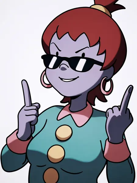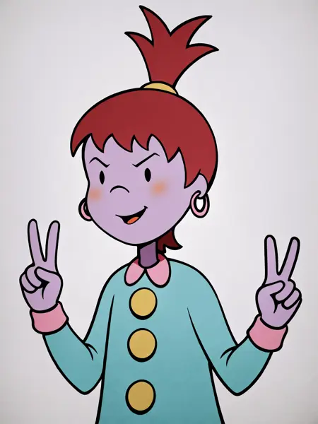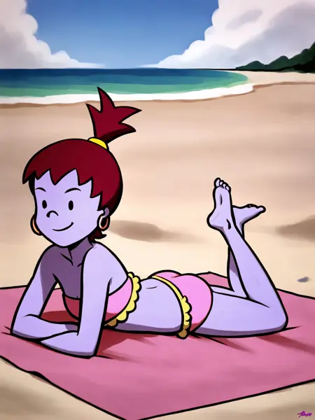 Beebe Bluff is purple-skinned with red hair from the series Doug. She is Patti Mayonnaise's best friend. She is the daughter of Bill Bluff, the richest man in Bluffington.