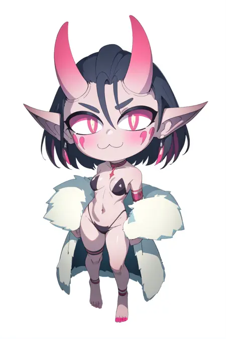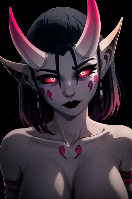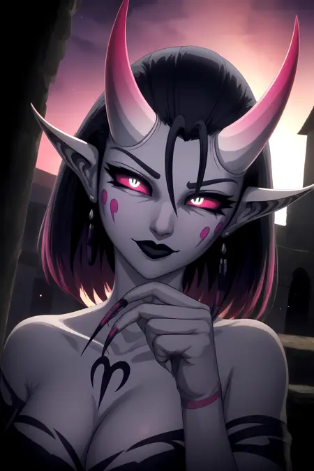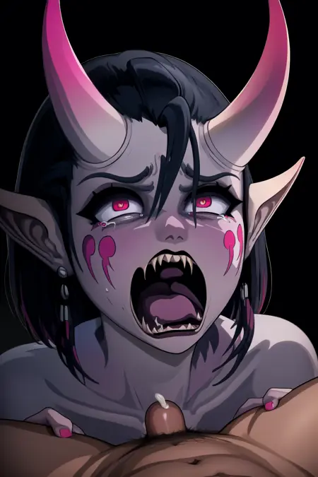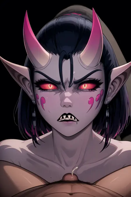 キャラクター - herzhax、鬼の角、ピンクの潰瘍、縦長の瞳