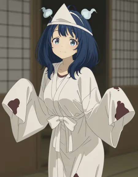 幽灵服装,人魂发饰,额饰,白色长袍,长衬衣,长袖,宽袖,袖子过腕,白色蝴蝶结,血迹