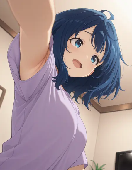 <lora:anna_yanami-makeine_s1-ixl-anime-soralz:1>, anna yanami (makeine), 蓝色头发,中长发,呆毛,蓝眼睛