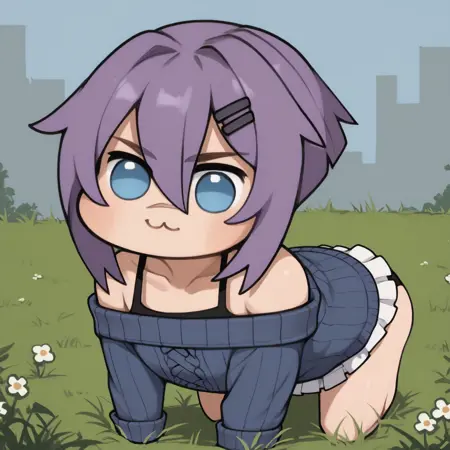 若要添加 Komi-san 的可爱表情,请添加:"mayacute, wide-eyed, blank eyes, no pupils, chibi, no mouth, animal ears, cat ears, purple ears"