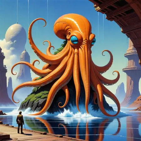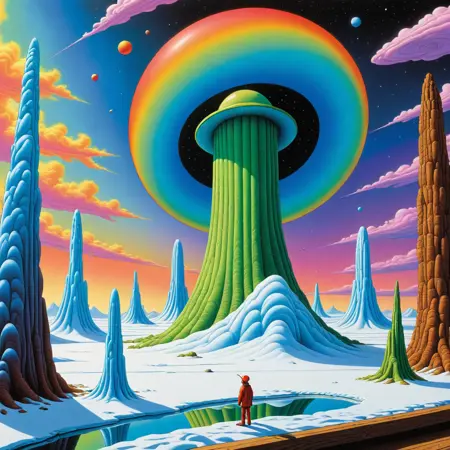 Embark on a whimsical journey through a surreal universe where the imaginative worlds of Moebius, Dr. Seuss, and Syd Mead collide. This LoRA model seamlessly blends the fantastical landscapes, vibrant color palettes, and otherworldly structures that define the unique styles of these three iconic artists.
