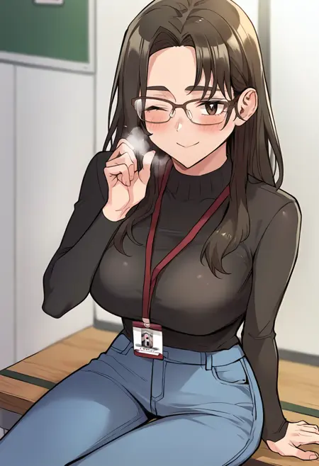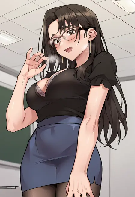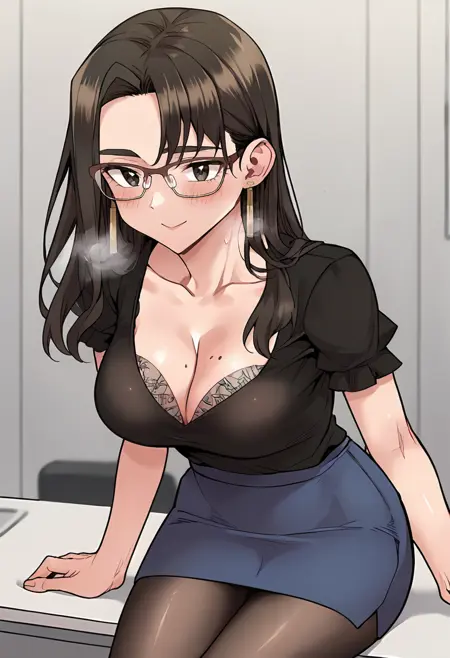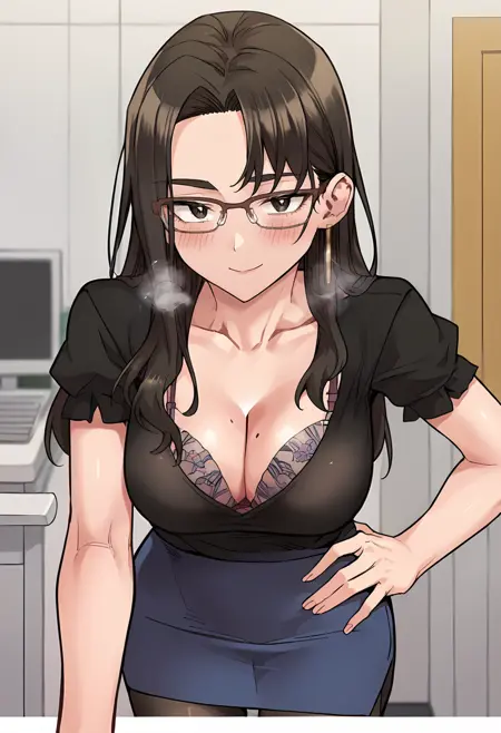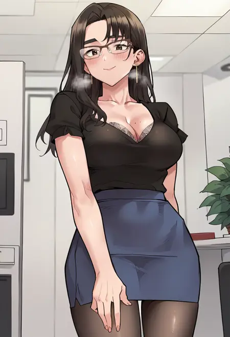 触发词: c-yeon、长发、黑发、半框眼镜、大胸、成熟女性、耳环,