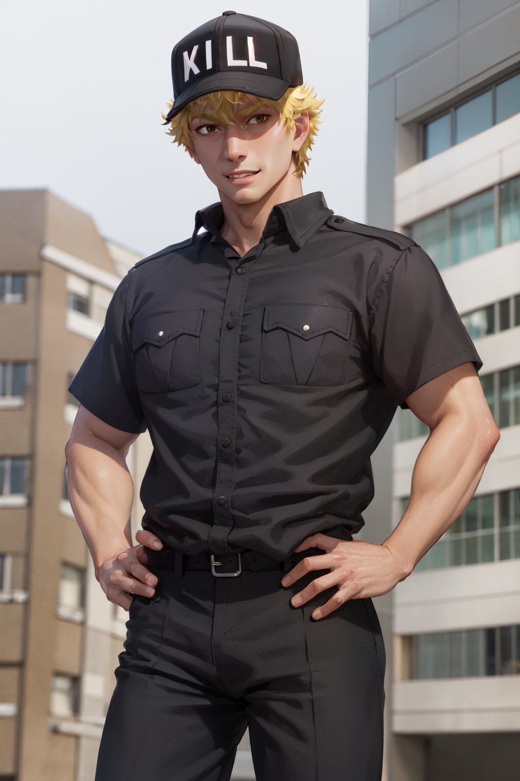 如有需要,请添加 金发 和 黄眼睛。我非常喜欢他的帽子效果。感谢提供额外图片的请求者。