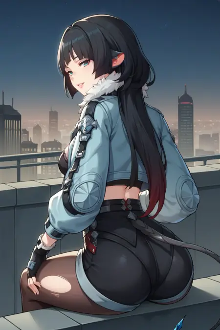 触发词: KJOjane, 中长发, 黑发, 水蓝色眼睛, 齐刘海, 尾巴, 鼠耳, 鼠娘