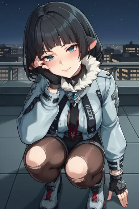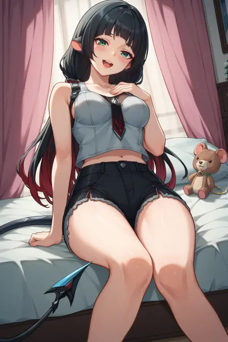 Triggers: KJOjane, medium hair, black hair, aqua eyes, blunt bangs, tail, mouse ears, mouse girl,