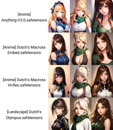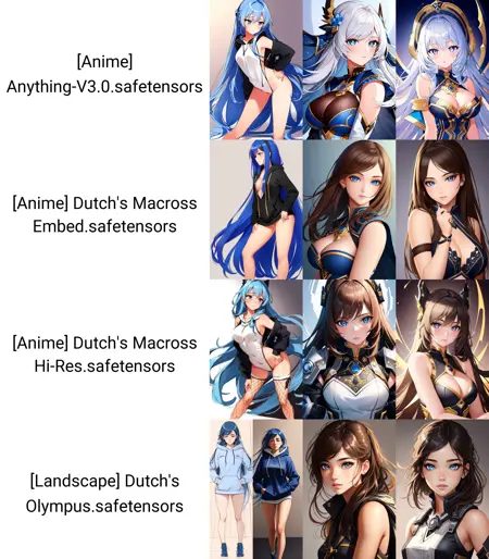 Macross Anime Ultimate: No longer do you need to use Macross Embed or Hi-Res! Today, you can switch to Macross Ultimate, which has all the functionality of the previous two models! Generate awesome anime characters in a huge variety of styles. This model is extremely robust, made even better if you upscale while using the Remacri Upscaler! (Place Remacri inside stable-diffusion-webui\models\ESRGAN and reload WebUI)