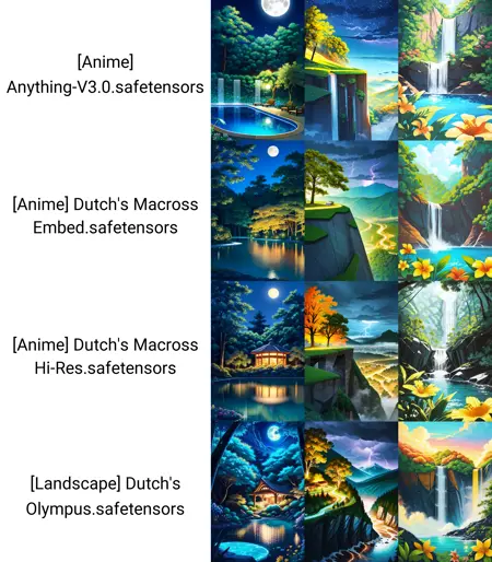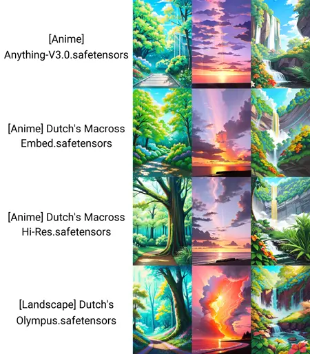 Olympus Landscapes: 매우 높은 품질의 풍경, 우주 전투, 판타지 설정을 생성할 수 있는 모델입니다. 또한 매우 고품질의 애니메이션 캐릭터도 생성할 수 있지만, 이것이 주된 목적은 아닙니다.