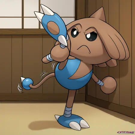 The basic prompts are: hitmontop, pokemon (creature), wrist wrap, spike tail, black sclera, white pupils, featureless hands,