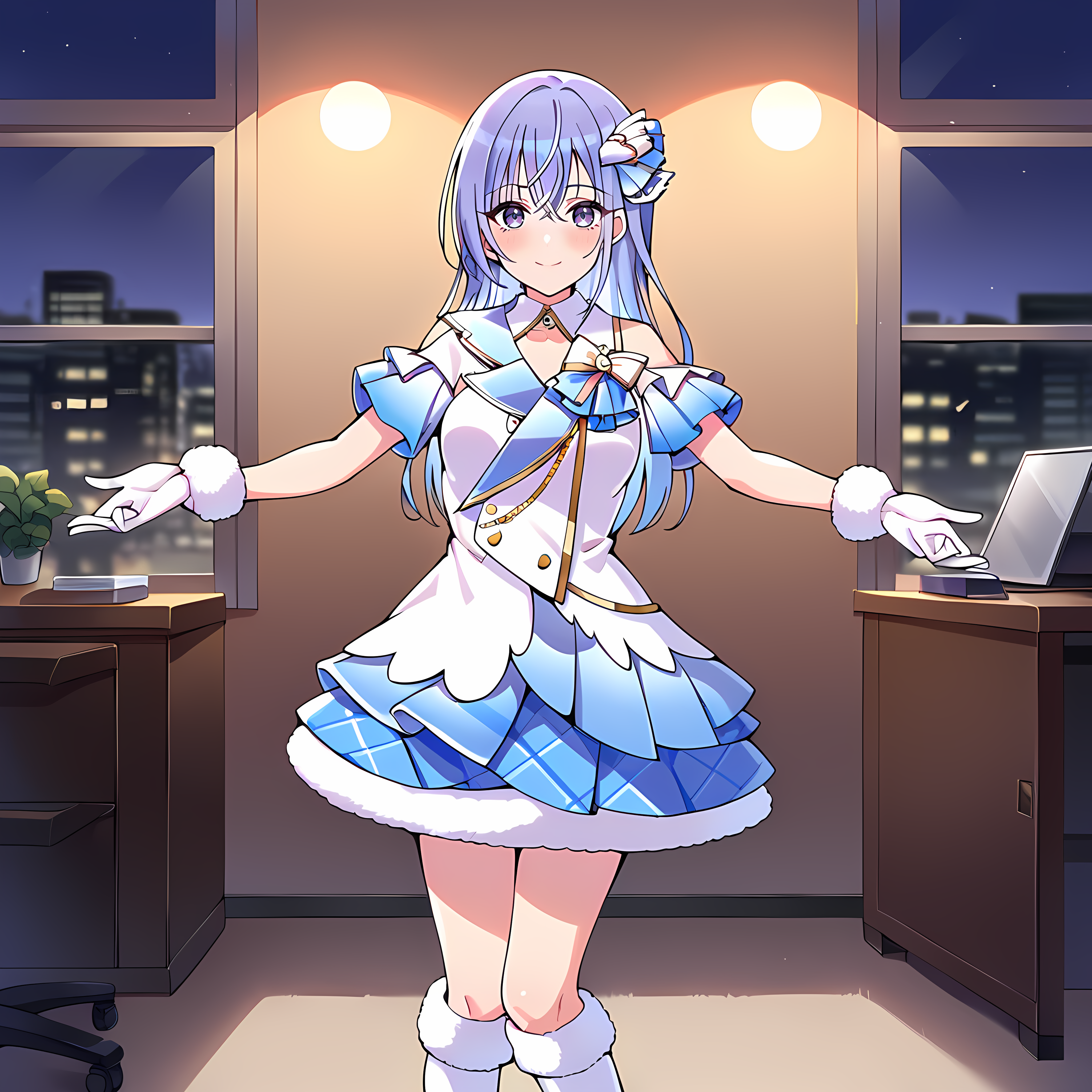 hanasuzukic2,long hair, hanasorgidol hair ornament, fur-trimmed gloves, hanasorgidol clothes, fur-trimmed knee boots,