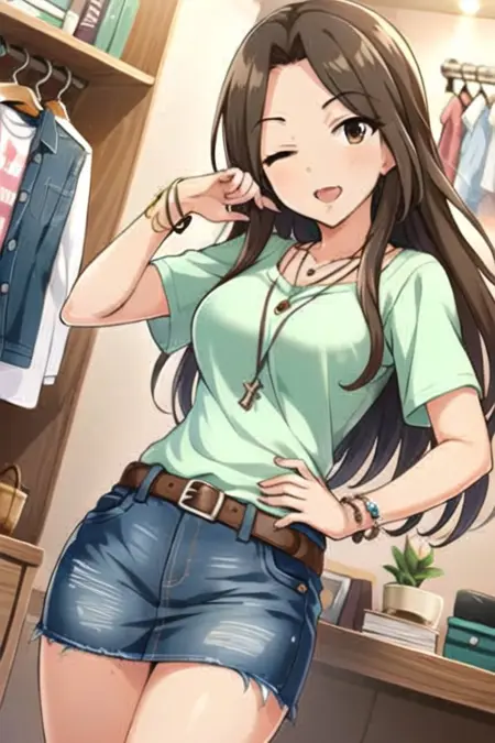 트리거 단어: 코무로 침미, 긴 머리, 갈색 머리, 갈색 눈