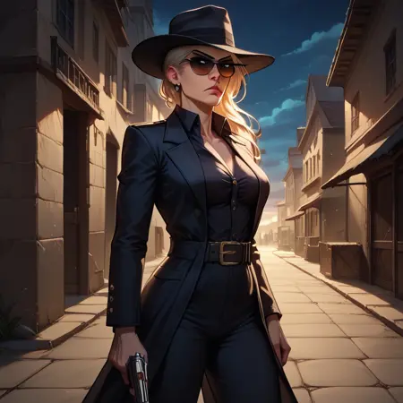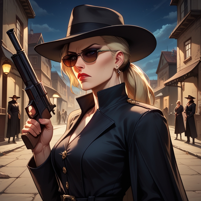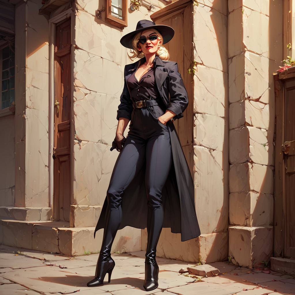 black_fedora - Incog이 밖에 있을 때 머리에 쓰는 페도라 모자, black trench coat와 함께.