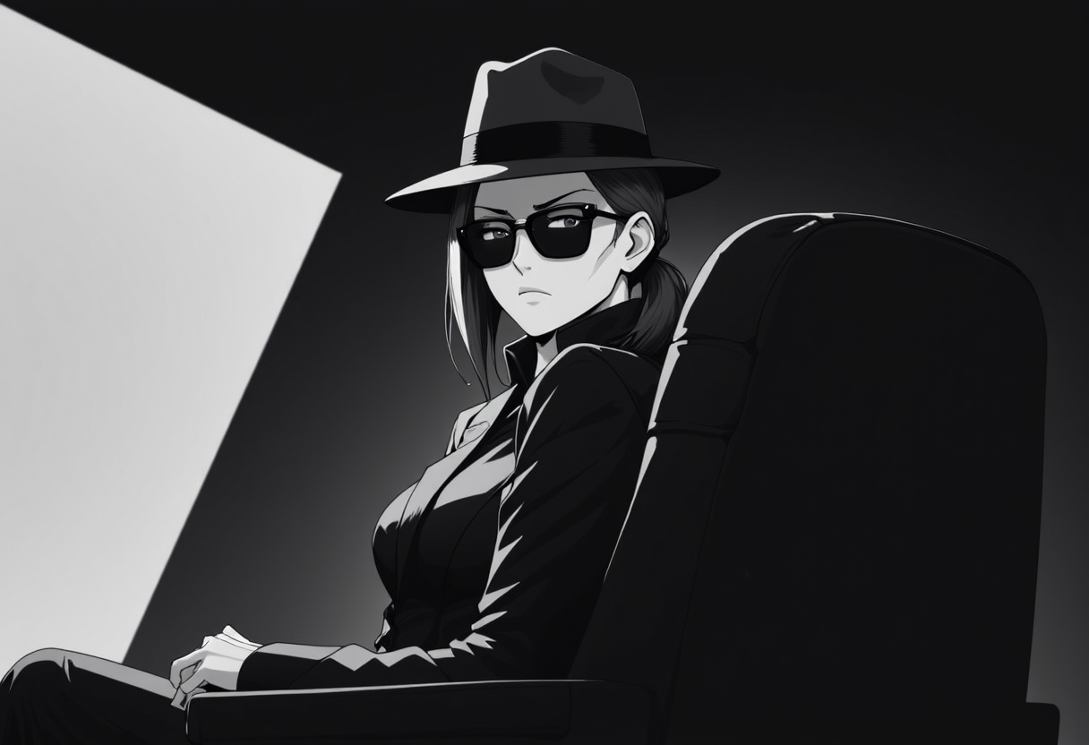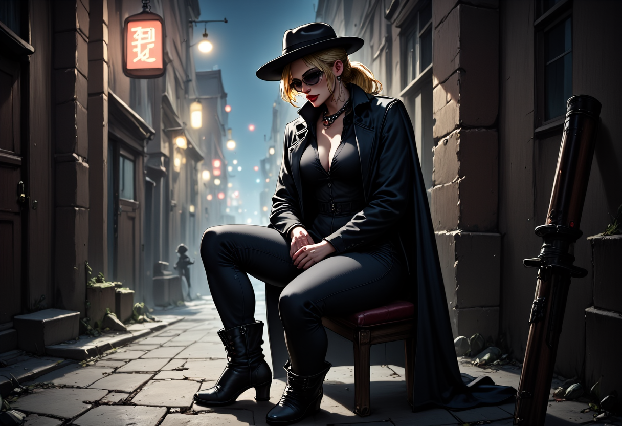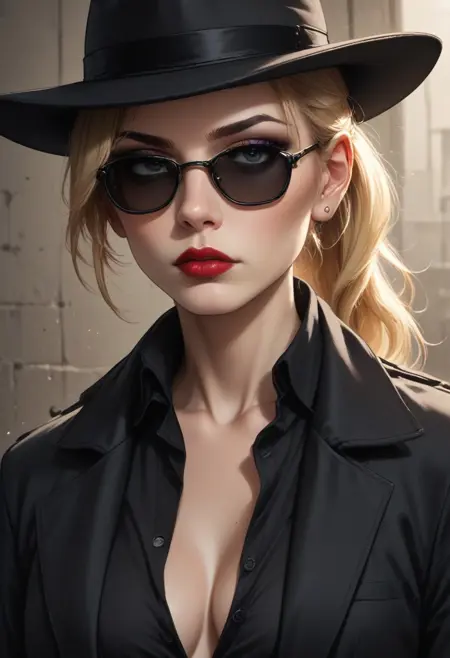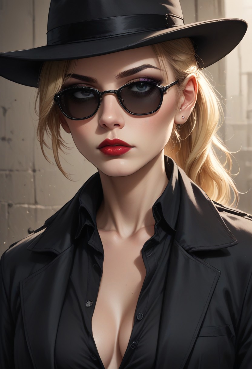 black_fedora - Incog이 밖에 있을 때 머리에 쓰는 페도라 모자, black trench coat와 함께.