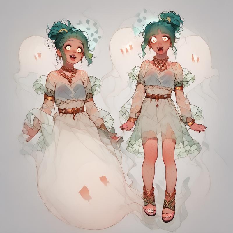 * "인간 형태의 유령" 또는 단순히 "강간"이라고 지정하면 유령을 인간 형태로 만들 수 있습니다. 사실 "강간"이라는 단어는 인간과 너무 강하게 학습되어 있어서, 이 LoRA에 영향을 미칩니다(혹은 미칠까요?).