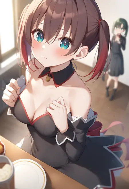 원작은 동인 게임 『히구라시 노 나쿠 코로 니』에 등장하는 레스토랑 유니폼을 입히는 LoRA입니다.