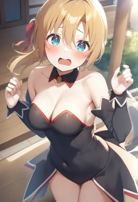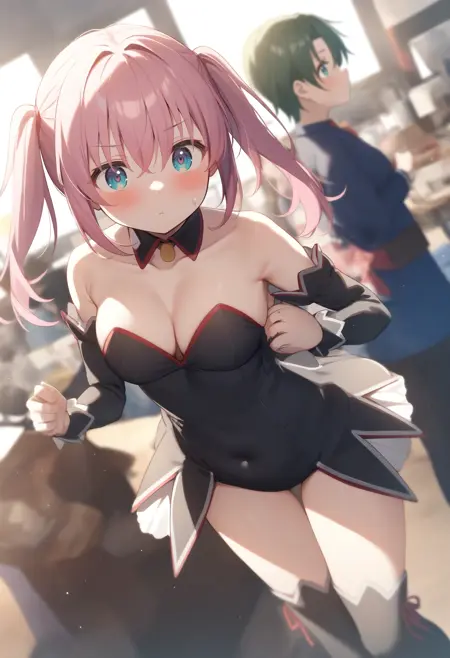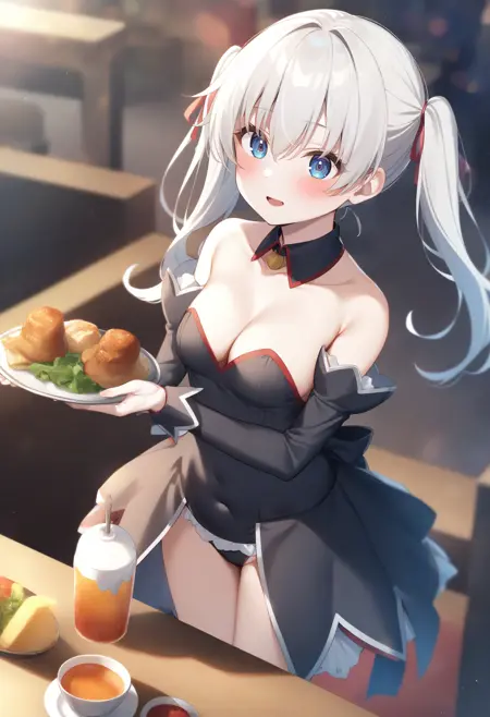 필수는 아니지만, detached sleeves, bare shoulders, waitress, detached collar, strapless, leotard, ribbon, collarbone, covered navel 등의 요소를 추가하면 더 안정적일 수 있습니다.