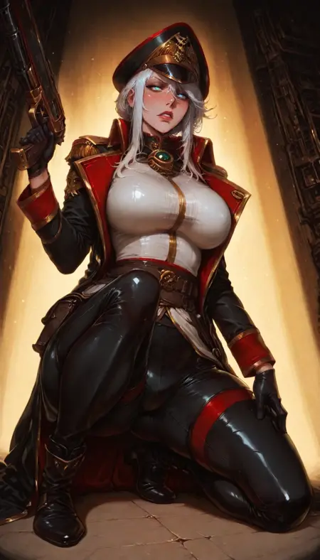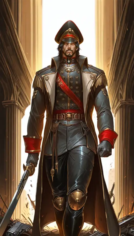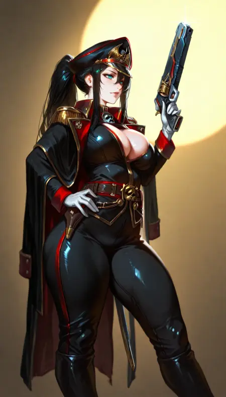 cmissar, commissar uniform, long coat, commissar hat , gun, sword, weapon,military,leather trousers, gloves, military uniform,