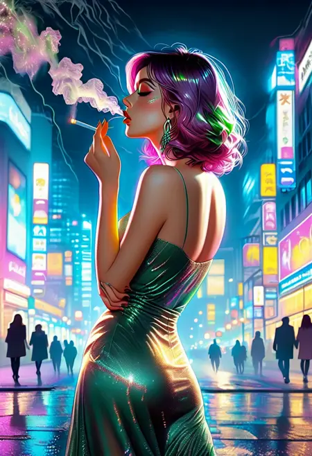 맞습니다—이 LoRA는 연기에 반짝이는 요정의 가루를 뿌려, 모든 연기 한 줄기마다 축제처럼 반짝이고 빛나는 효과를 만들어냅니다. 수년간 금연을 시도해왔는데, 결코 떠나지 못한 진짜 이유가 바로 피ksi 스틱이 살아나는 내 안의 어린아이 꿈을 펼치기 위해서였다고 알아버리다니! 이 모델은 여러 이미지 스타일(애니메이션, 준 실제적, 일러스트레이션 등)로 학습되었습니다. 저는 강도를 0.7~1.0 사이에서 실행하지만, 여러분도 다양한 값을 시도해보시길 권장합니다. 즐겁게 사용하세요!