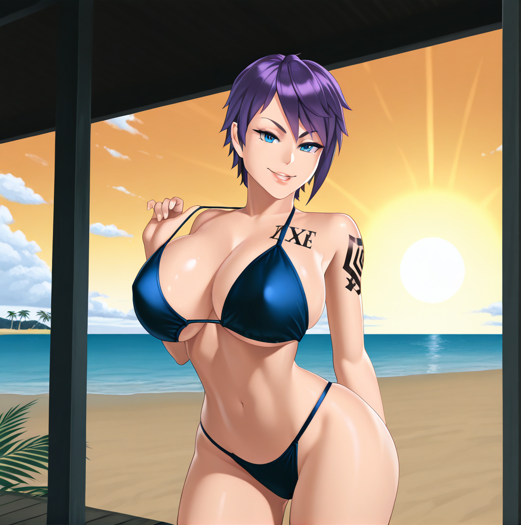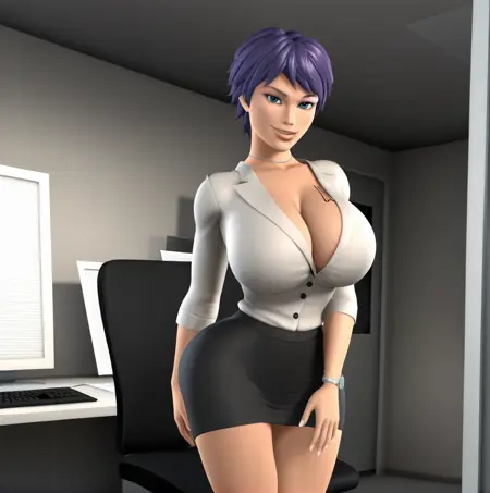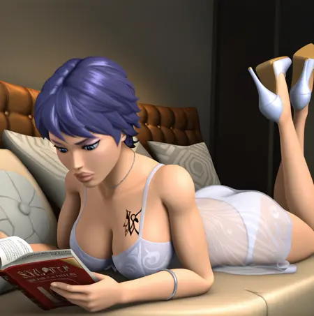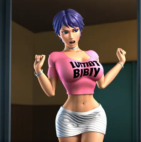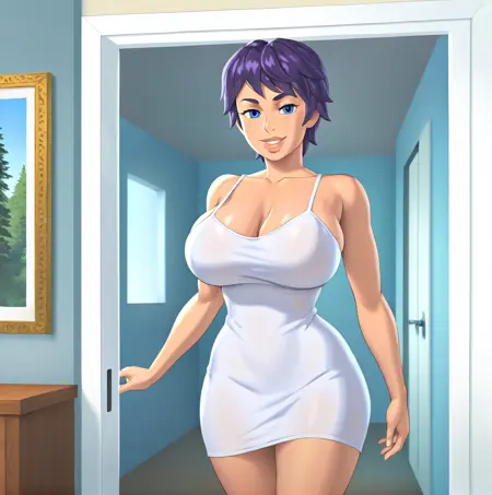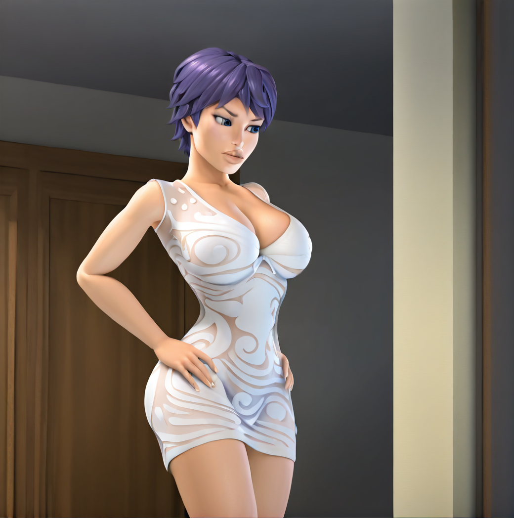 标签:sixofone,紫色头发,短发,嘴唇,白色裙子,透明
