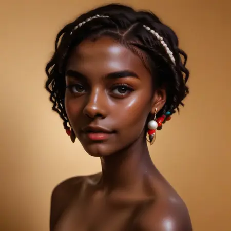 황금 배경에 어두운 피부를 가진 펨보이 모델을 생성합니다. 이 모델은 이름이 필요해서 '케냐인'이라고 불렀지만, 특정 인종이나 문화와 반드시 연결되지 않습니다.