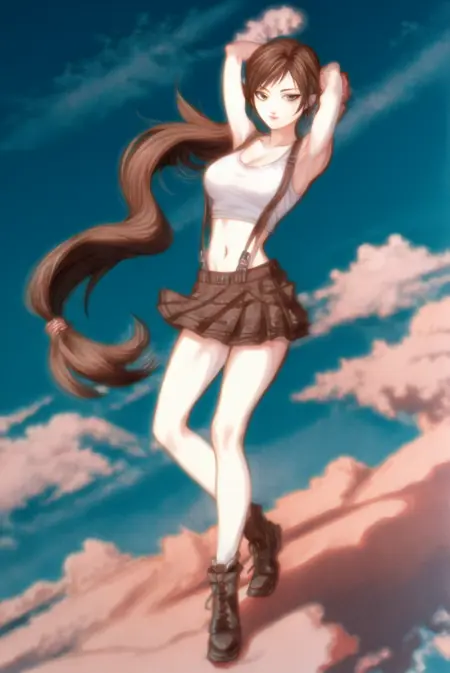 At some point I noticed nobody had yet made a LoRA of her because there are already so many decent TIs, so I decided to make one, and being this a LoRA, I could fit ALL Tifa's outfits. This one triggers with tifa lockhart but can also accept game/movie names to specify which Tifa (e.g: final fantasy vii advent children for her AC outfit + descriptive tags) and dress tags for the official Remake outfits (e.g: tifa lockhart's refined dress). Check pics on Danbooru for all the tags, or the examples I provided. It also gets very easily her cowgirl outfit and, with a bit of failed attempts, her green dress from the flashback (kind of). Of course it can do her OG FF7 outfit. I used 0.6 weight.