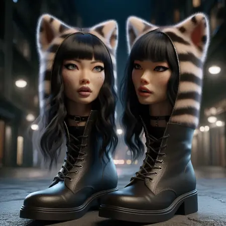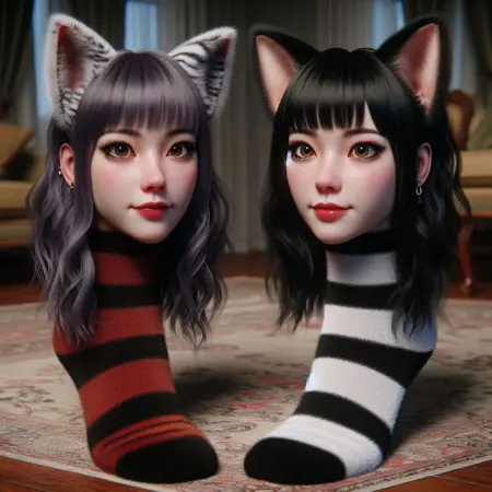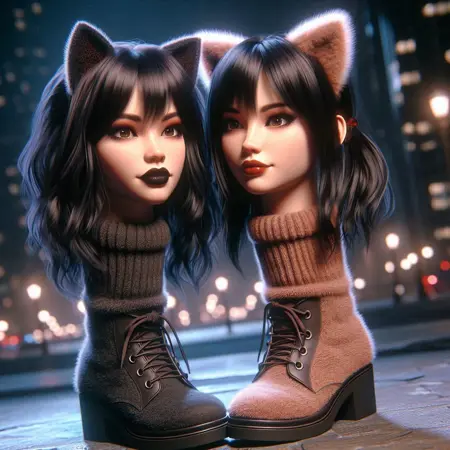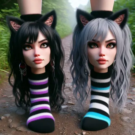 一群穿着袜子和靴子、踩在脚上的猫娘哥特女孩