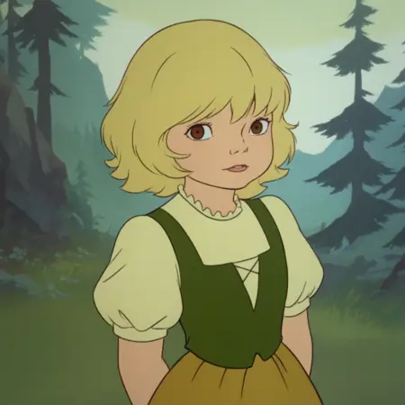 heidi, 1girl, solo, blonde hair, short hair, brown eyes,