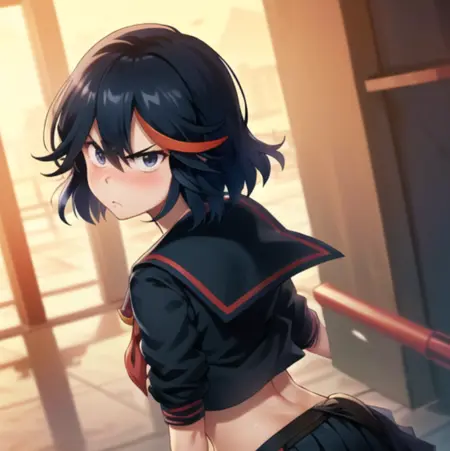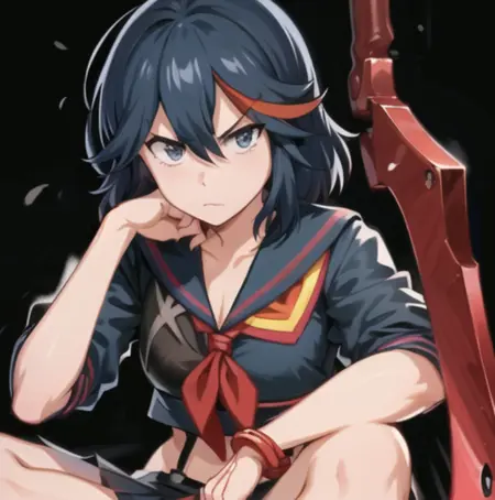 I suggest using this LoRA at 0.75-0.8 and using matoi ryuuko, black serafuku, black skirt, red hair in the prompts.