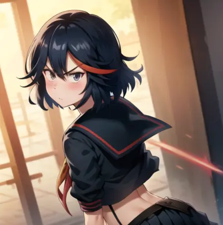 이 LoRA는 0.75~0.8의 무게로 사용하는 것을 추천하며, 프롬프트에 matoi ryuuko, 검은 세라퓨쿠, 검은 스커트, 빨간 머리를 포함시키세요.
