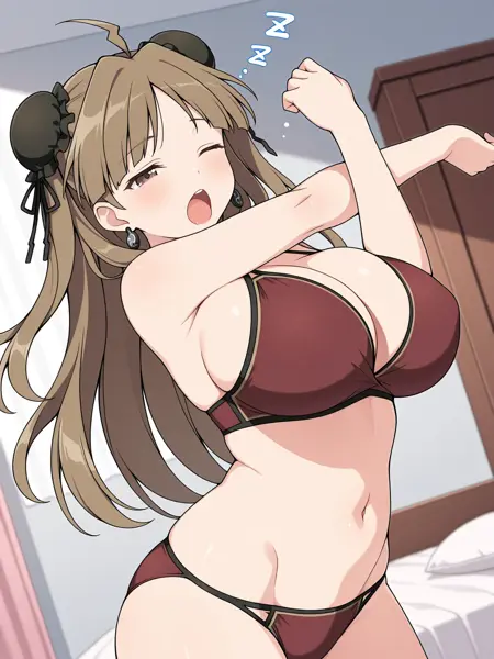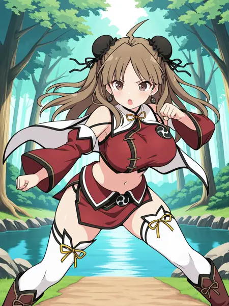 Trigger Word for the LoRA are "Renka_IL, brown eyes, long brown hair, ahoge, double bun, bun cover, hair ribbon, large breasts".