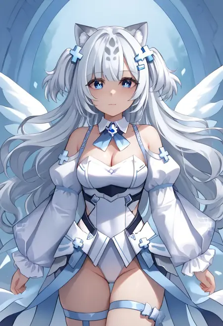 + FuuraYuri3rd, white hair, blue eyes, long hair, animal ears, hair ornament, bangs, two side up, eyepatch