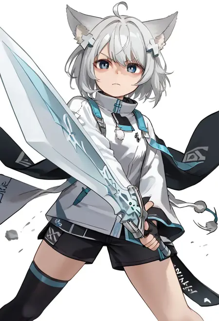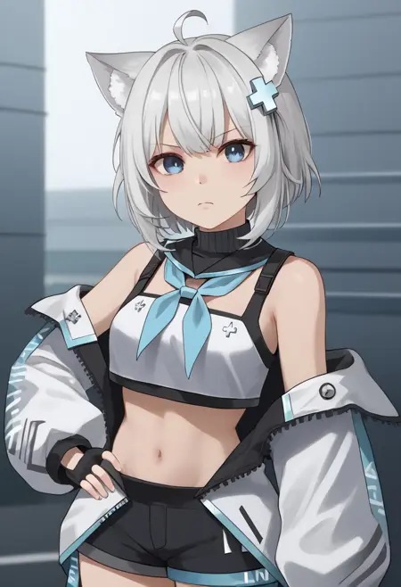 + FuuraYuri2nd, blue eyes, hair ornament, animal ear fluff, ahoge, bangs, grey hair, white hair, short hair