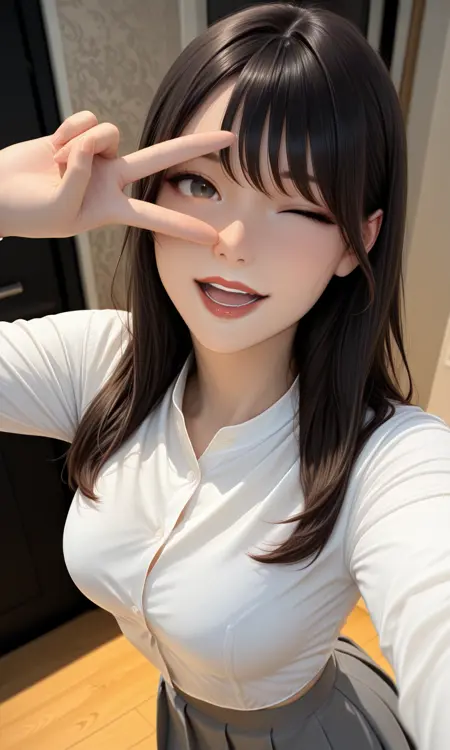 This model is designed to help users generate the image of an extremely charming and uninhibited office lady: a white shirt, grey mini skirt, stockings, garters, and easily noticeable white lingerie.