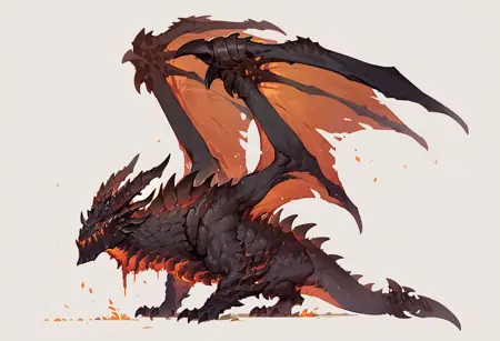 Deathwing: deathwing, black body, metal jaw, glowing red, fire, wings, horns