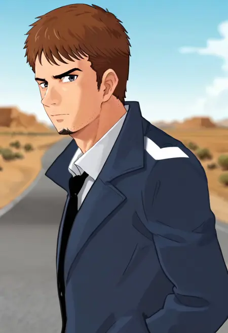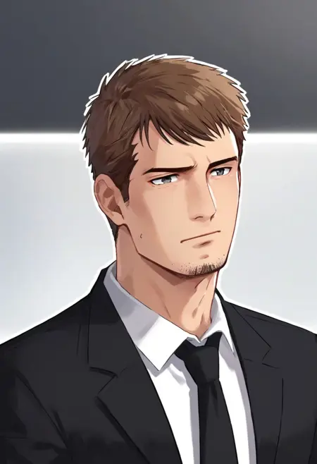 외모 태그(선택 사항): 갈색 머리, 수염, 회색 눈, 34세