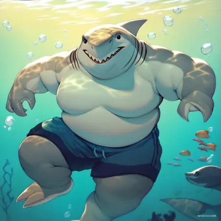 最佳正面输入:(鲨鱼之王,鲨鱼,拟人,肥胖,三趾)