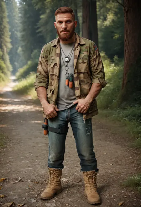Jacket: camouflage, jacket, rolled_sleeves, sleeves_rolled_up, open jacket