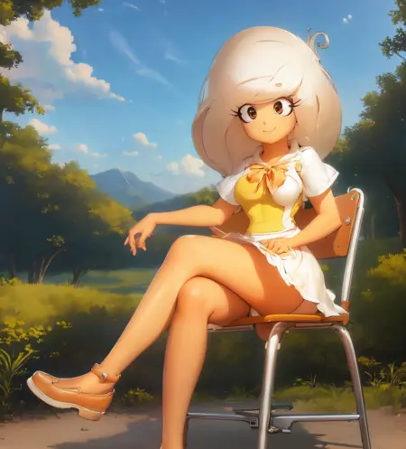 일반 복장 태그: 흰색 치마, 노란색 스웨터