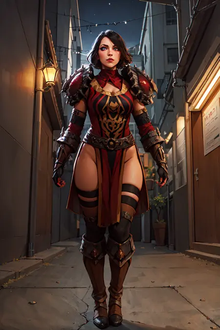 클래식한 옷차림: armor, pauldrons, thighhighs