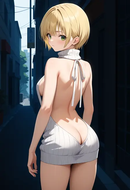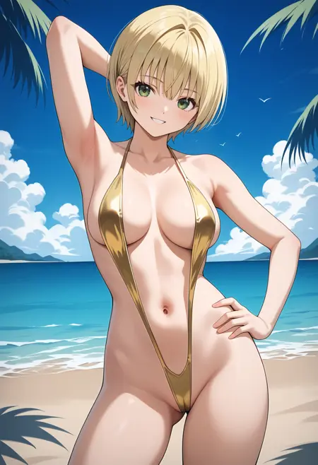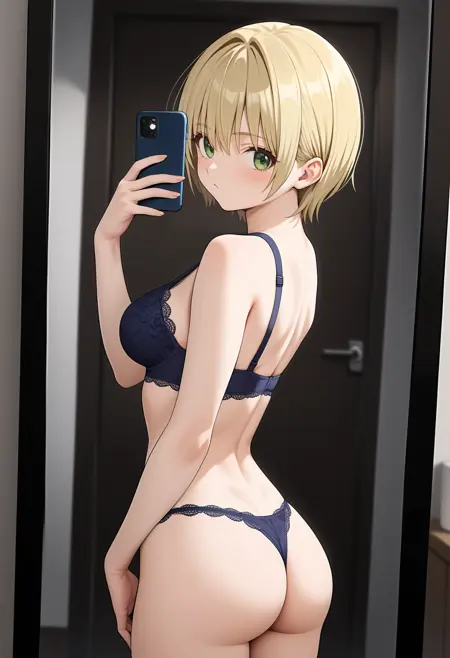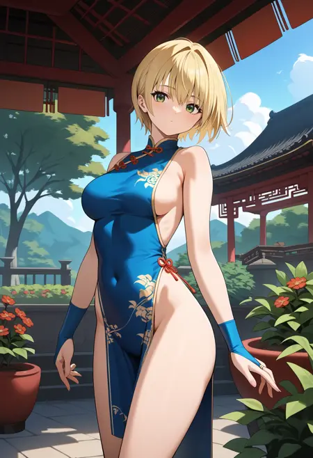 aatsukasa, short hair, blonde hair, green eyes, breasts