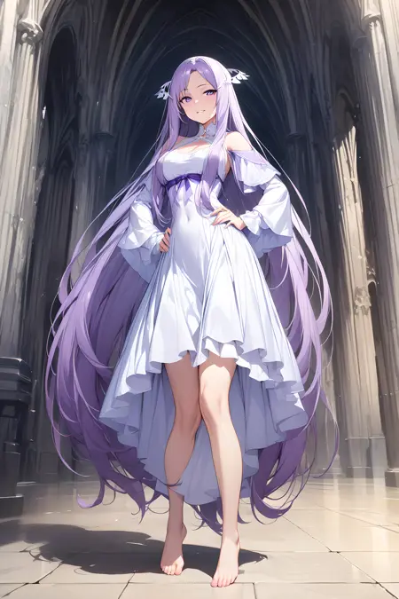 활성화 태그는 "quinella"입니다. 외모는 "긴 머리, 매우 긴 머리, 보라색 머리, 보라색 눈"입니다. 대안으로 "anime coloring" 태그를 사용하여 애니메이션 스타일로 보이게 할 수 있습니다. 옷 태그는 샘플 이미지에도 나와 있습니다.