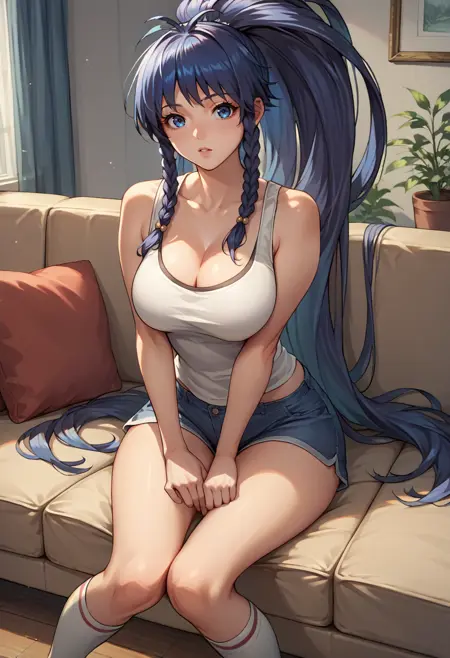 Custom outfit: defTana, long hair, high ponytail, twin braids