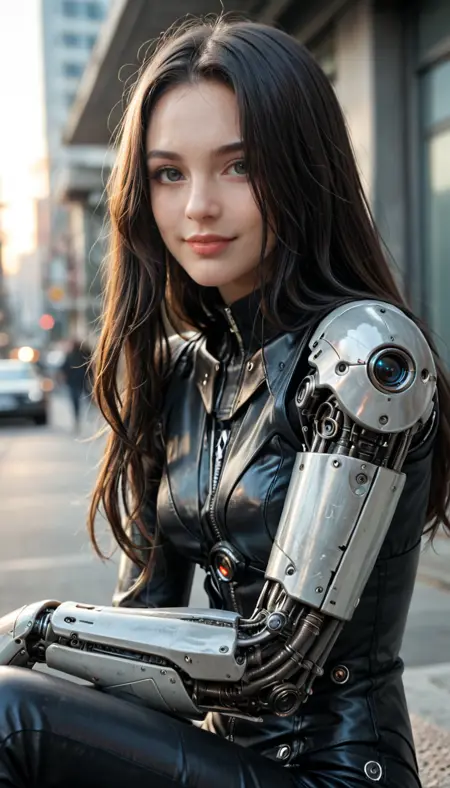 EXAMPLE: score_9, score_8_up, score_7_up, Raw Photo, Cowboy Shot, yorha no. 2 type b, short white hair, black dress, hairband, black gloves, clothing cutout, cleavage cutout, puffy sleeves, long sleeves, black hairband, feather-trimmed sleeves, juliet sleeves, mole under mouth, holding katana, black thighhighs, turtleneck, sunset, rubble in the background, depth of field, dynamic angle, photo realistic:1.4, realistic skin:1.4, fashion photography, sharp, analog film grain, hyperdetailed:1.15