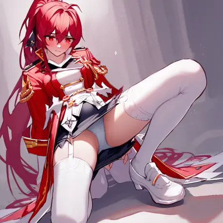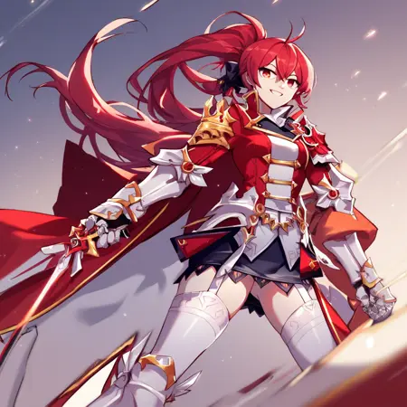 トリガー: solo, 1girl, elesisEmpSord, ポニーテール, 赤髪, 赤い目