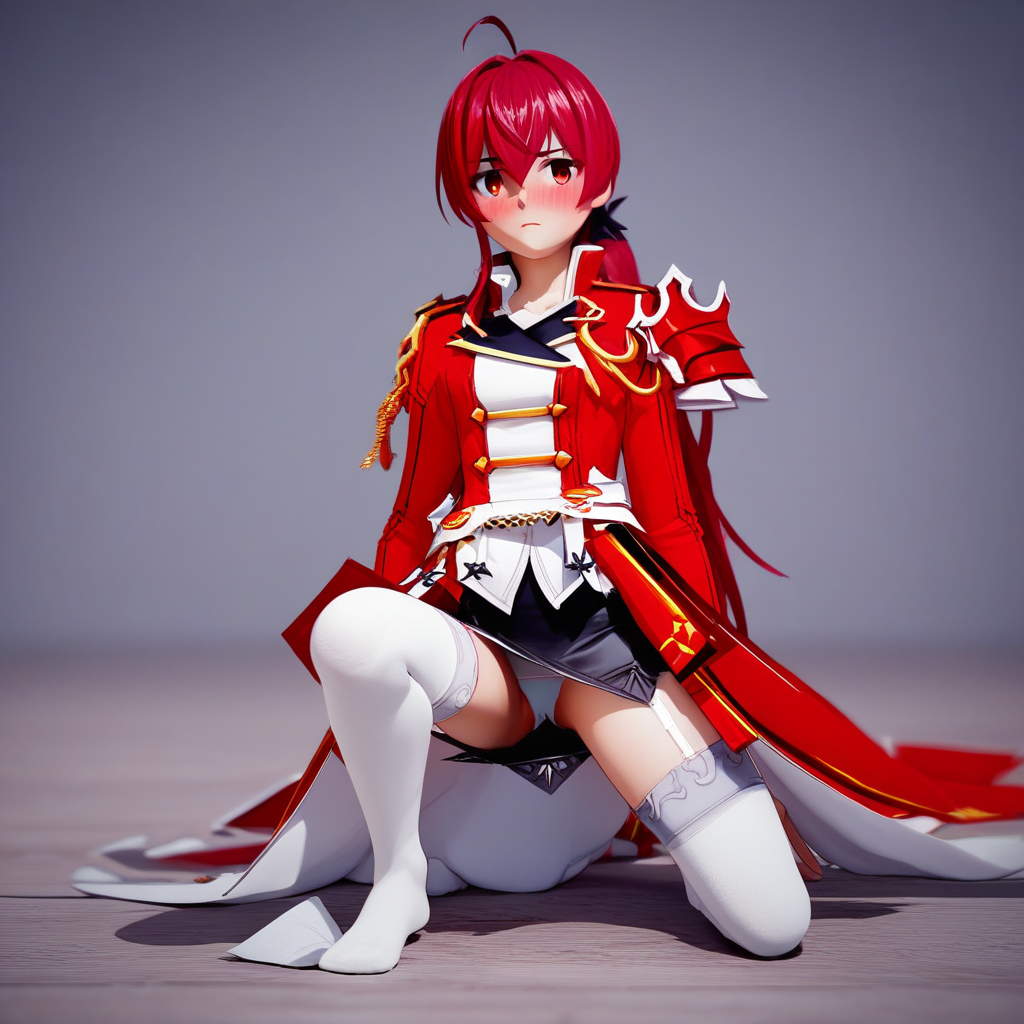 触发词: solo, 1girl, elesisEmpSord, 马尾辫, 红发, 红眼