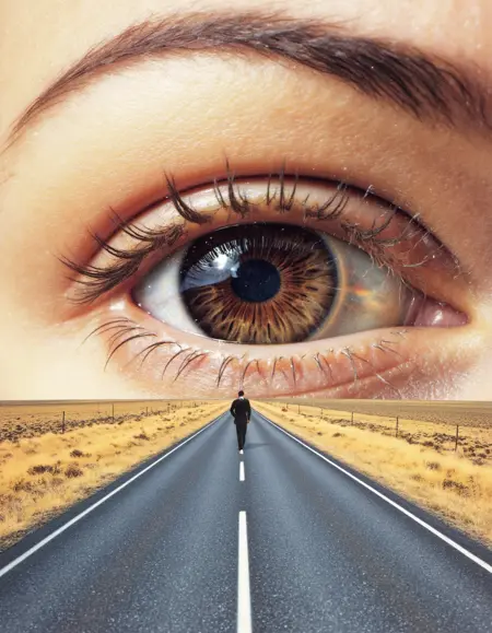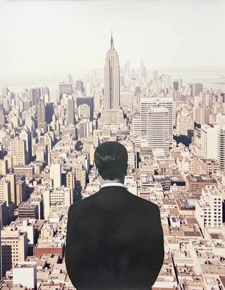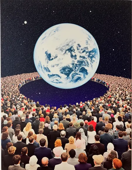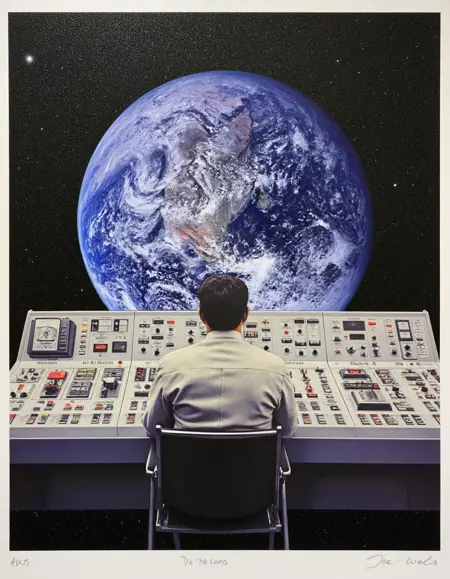 背景に地球の見える二つの椅子の写真コラージュをjoe-webbのスタイルで