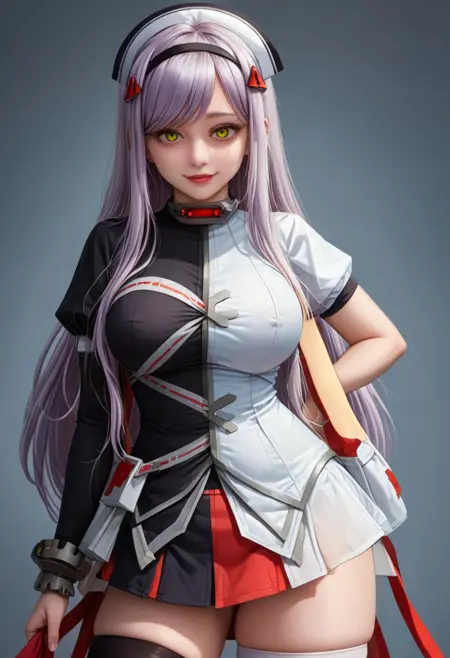 Trigger + Appearance: Black_lilith, yellow eyes, asymmetrical legwear, asymmetrical clothes
