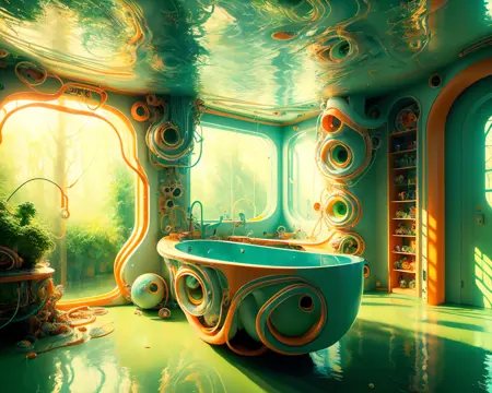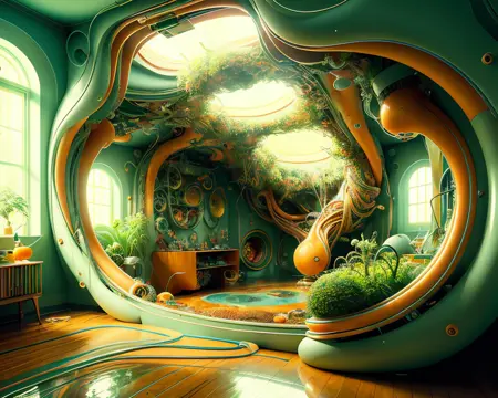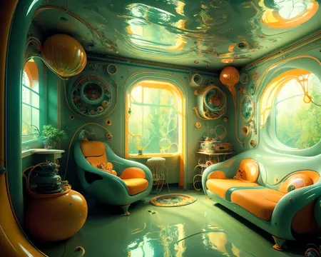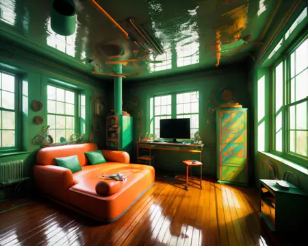 이름에서 알 수 있듯이, 이 모델은 기본적으로 주로 집 안의 방을 생성하도록 설정되어 있습니다. "Topnotch Artstyle"이라는 트리거 단어를 입력하면, SD가 이 스타일의 방 이미지를 생성합니다. 물론 다른 상황에서도 매우 잘 작동하니, 프롬프트를 다양하게 실험해 보세요.